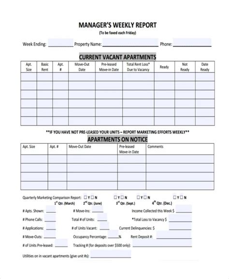 Weekly Manager Report Template